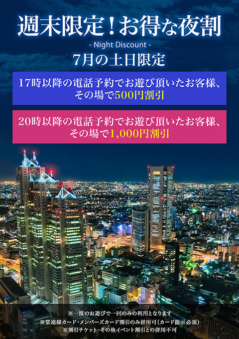 ■20時以降の電話予約でお遊び頂いたお客様、その場で1,000円割引