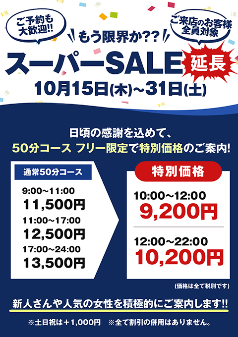 日頃の感謝を込めて、50分コース フリー限定で特別価格のご案内!