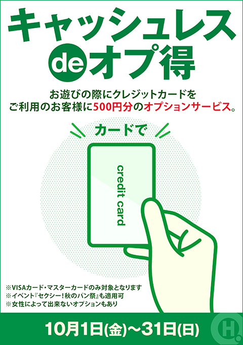 お遊びの際にクレジットカードを、ご利用のお客様に500円分のオプションサービス。