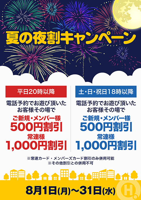 土・日・祝日18時以降電話予約でお遊び頂いたお客様その場で