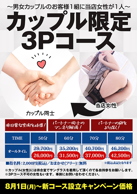 ※3Pコース不可の女の子もいます。事前にお問い合わせください。