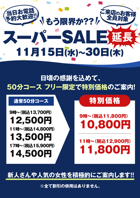 日頃の感謝を込めて、50分コースフリー限定で特別価格のご案内!