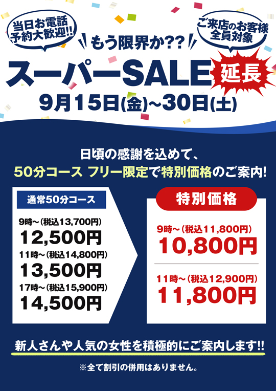 日頃の感謝を込めて、50分コースフリー限定で特別価格のご案内!